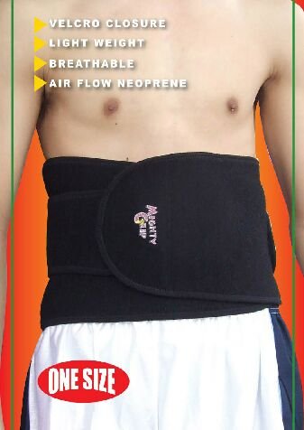 Used for work related and sports back injuries and heavy lifting support, applies warmth and varibale compression also restricts twisting for fast relief. This it comes with removable stays. One Size Fits ALL! VELCRO® brand Closure Light Weight Breathable Air Flow Neoprene.